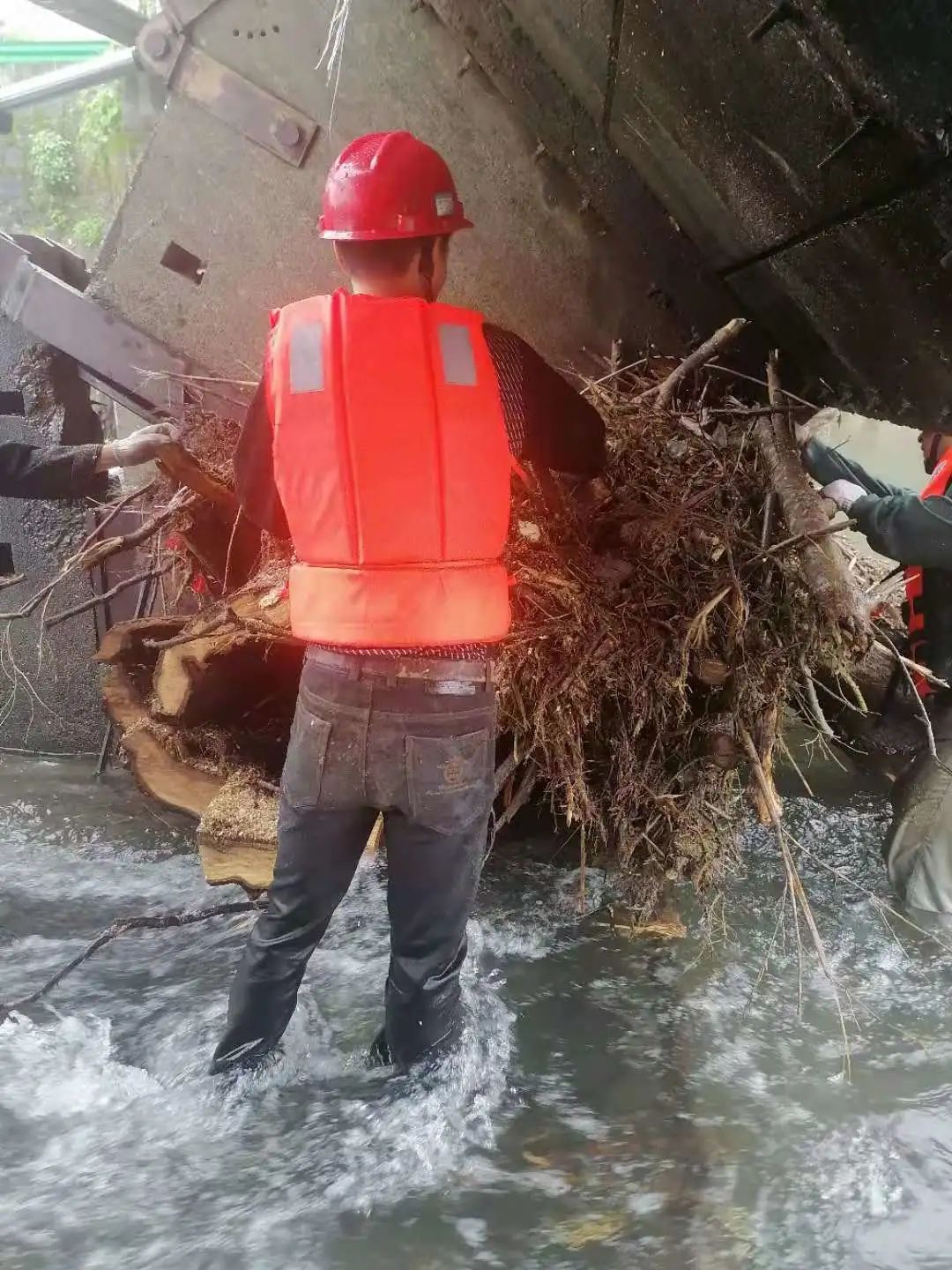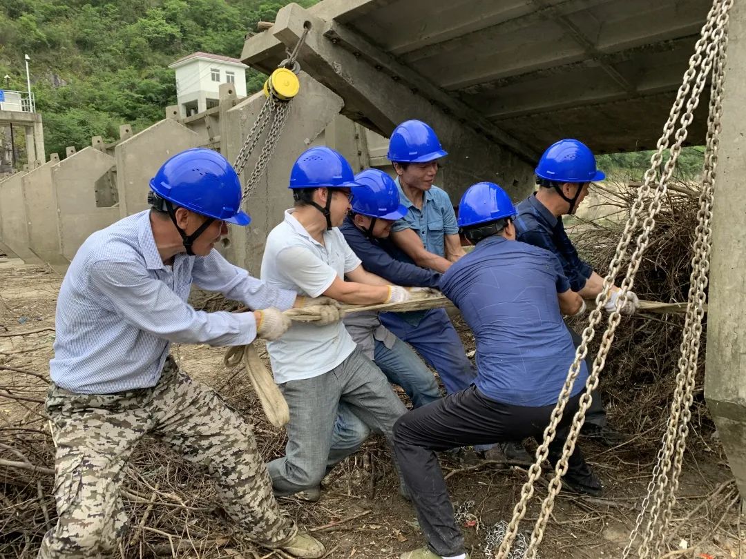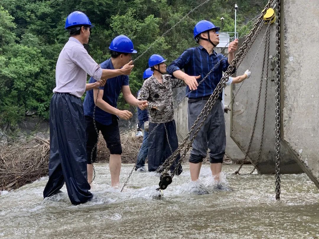 自5月以来,大别山区、皖南山区阴雨连绵,太阳网集团tcy8722所属电站雨量丰沛,但同时导致各电站河道内的枯枝杂草、浮游垃圾增多,特别是霍山县将军石水电站和祁门县历口水电站,由于上游洪水使大量树枝树头冲到下游,卡堵住翻板坝,导致翻板坝无法自动复位,大坝漏水严重。