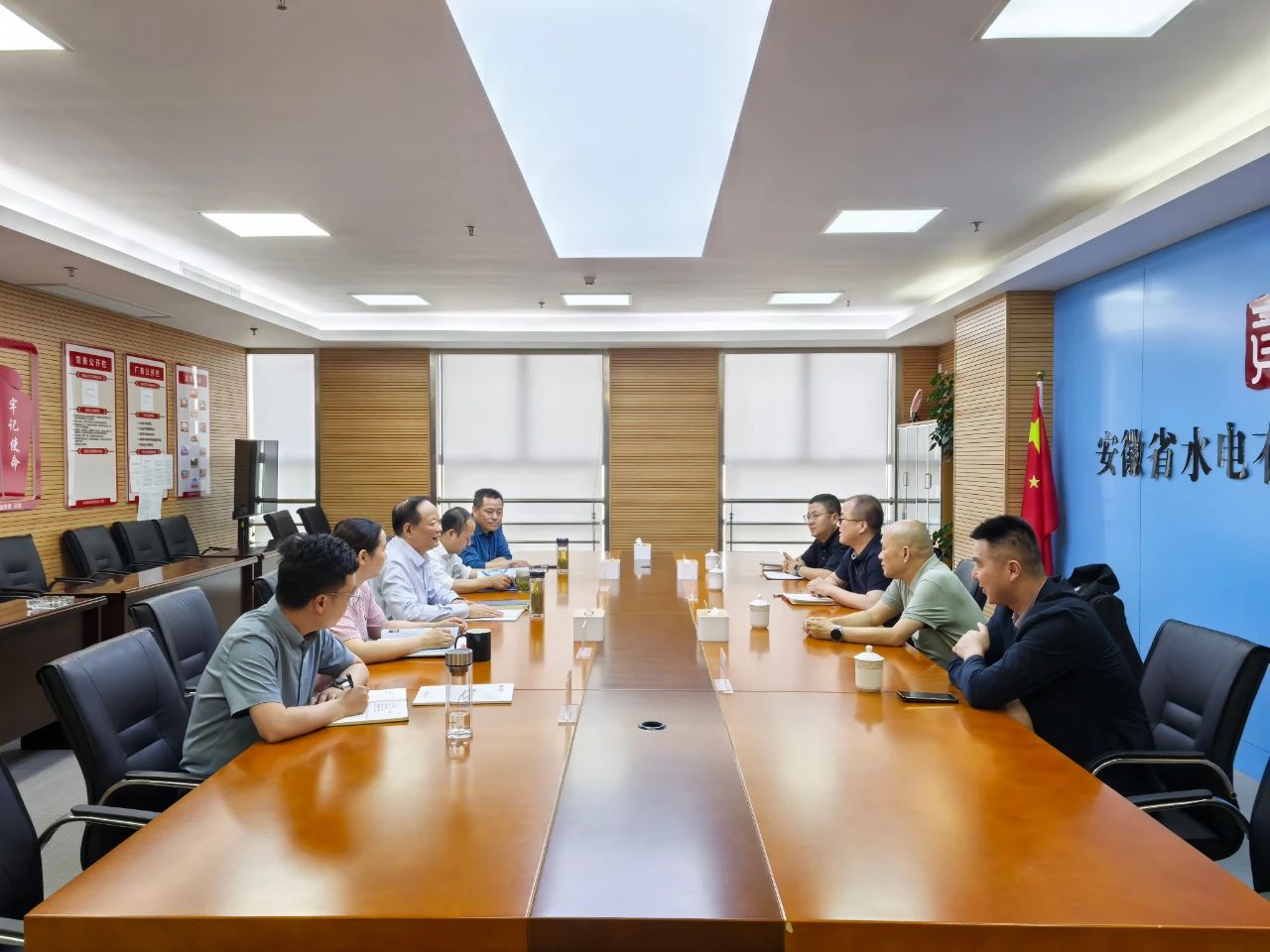 4月23日下午,中电建西北院安徽分公司负责人丁永强、中交一航局安徽区负责人刘永安一行到访太阳网集团tcy8722,公司党委书记、董事长丛新宇会见到访客人并开展交流座谈。