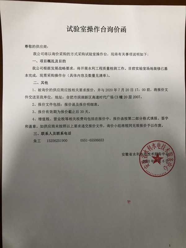 当前位置: 首页 >>新闻中心 >>通知公告 >>安徽省水利水电技术服务中心试验室操作台询价函