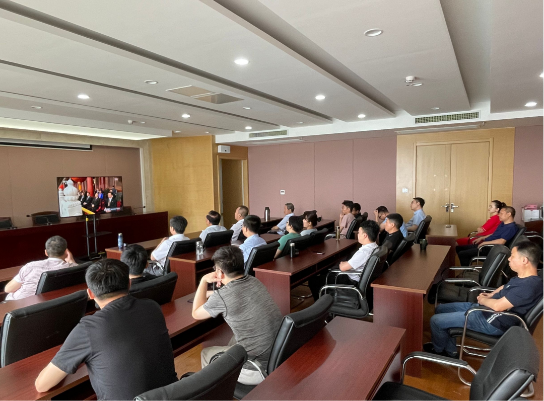 7月1日上午,庆祝中国共产党成立100周年大会在北京隆重举行。公司全体党员干部在会议室通过直播集中收看大会盛况,聆听习近平总书记重要讲话。