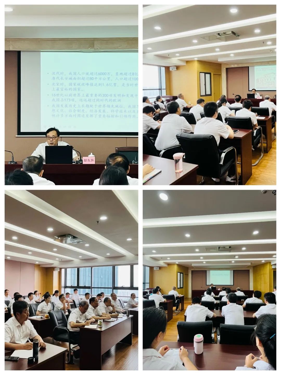 胡东升教授围绕“中国共产党的百年辉煌”主题,从中国共产党的创建、中国共产党百年奋斗创造的伟大成就、中国共产党百年奋斗的历史意义和历史经验三个方面,讲述了中国共产党践行初心使命的百年波澜壮阔历程,回顾了党领导人民取得的举世瞩目的辉煌成就。宣讲主题鲜明、思想深邃、内涵丰富,事例鲜活生动,讲解深入浅出,给大家带来深刻的思想启迪。
